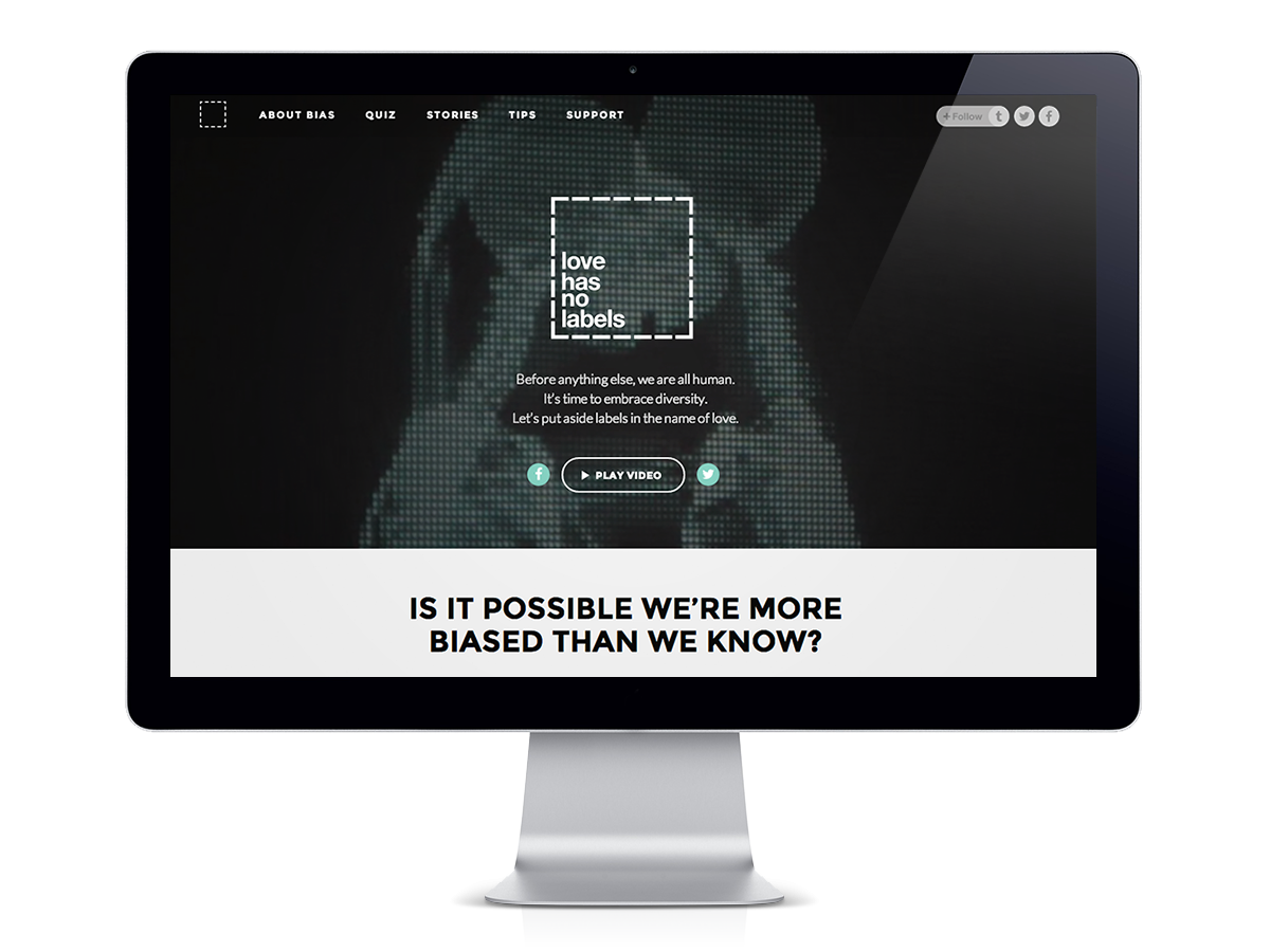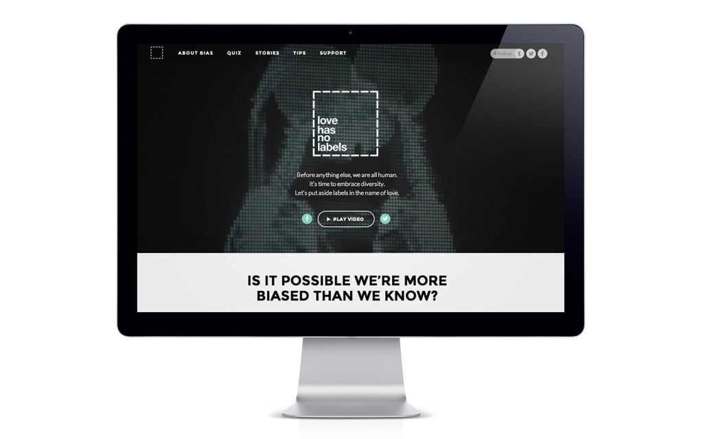 The Ad Council asked R/GA to create a yearlong campaign to raise awareness of bias and discrimination. Love Has No Labels launched with a film, and was supported by posters, display, social, and a website (link below). My primary role was to pick up where the film left off and continue the conversation on the Love Has No Labels website, which I wrote in its entirety. After the film’s release, millions of viewers visited the LHNL site, where they were educated on all things unconscious bias. The film, coupled with the site, won several integrated campaign awards, including 2 Bronze Cannes Lions (Integrated/Titanium and Cyber). 2 Gold Clios (Integrated and Digital Campaigns). Gold Facebook (Integrated Campaign). Mashable Gold Best in Show. Webby (Integrated Campaign). D&AD Wood Pencil.